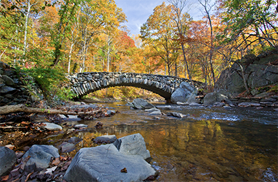 | Boulder Bridge in Rock Creek Park in the fall (Photo by Tony DeYoung, courtesy of the National Park Service). |
